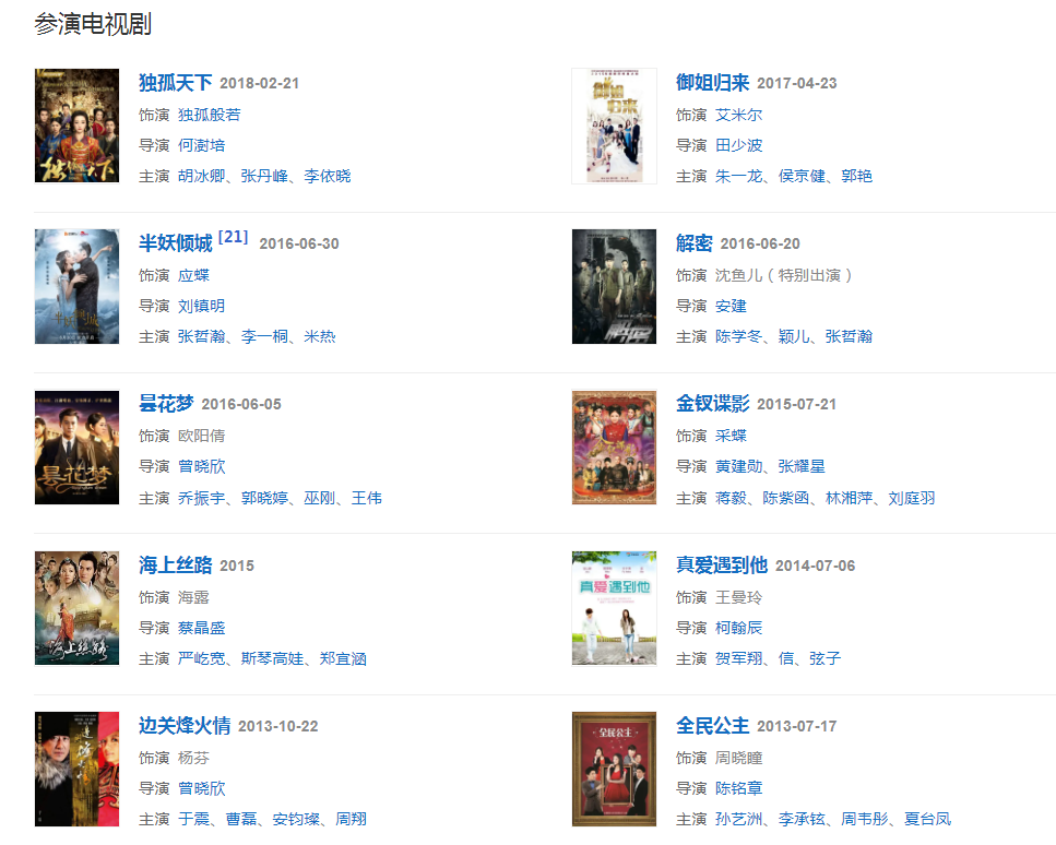 代表作品:下一站,幸福、斗魚、仙劍奇?zhèn)b傳、獨孤天下、倚天屠龍記、雪山飛狐、蕓娘、古今大戰(zhàn)秦俑情