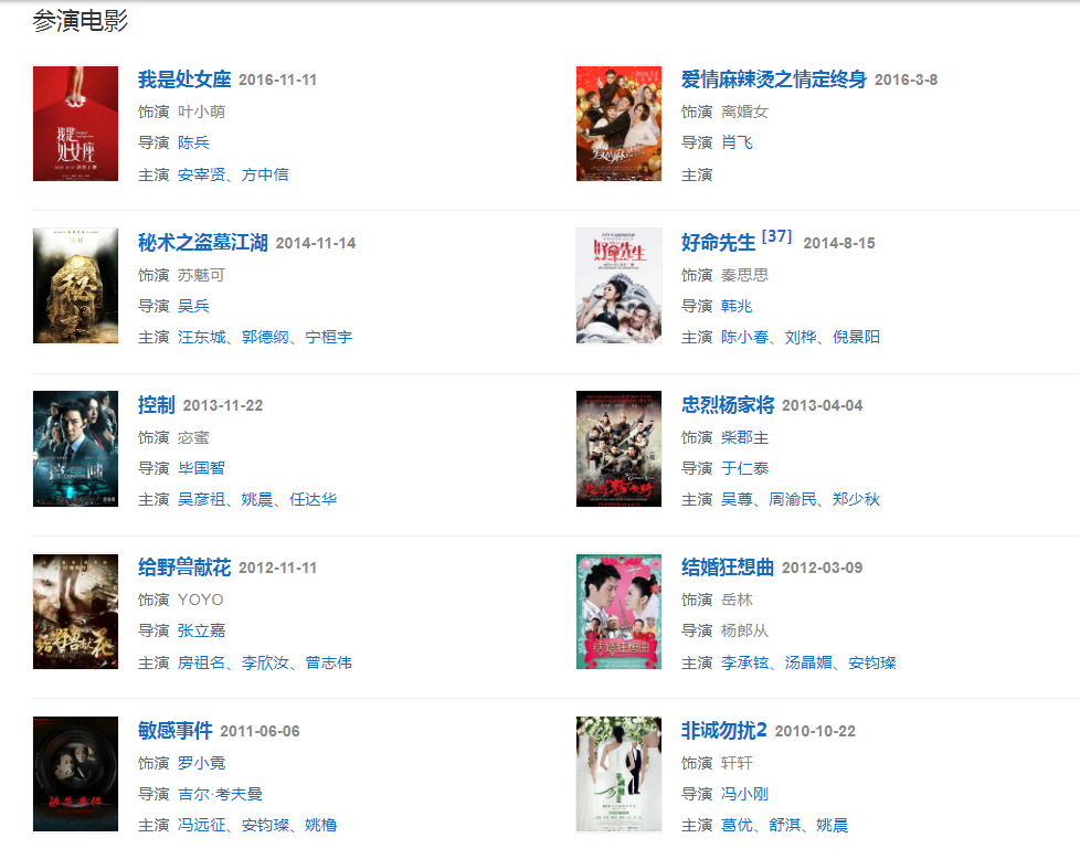 2016年,憑借浪漫愛情電影《我是處女座》獲得了第8屆澳門國際電影節(jié)最佳女主角提名。