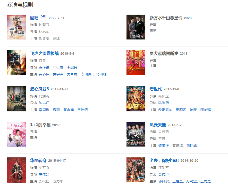 1982年,在清末民初電視劇《萬水千山總是情》里飾演熱血愛國女學(xué)生并主唱插曲。