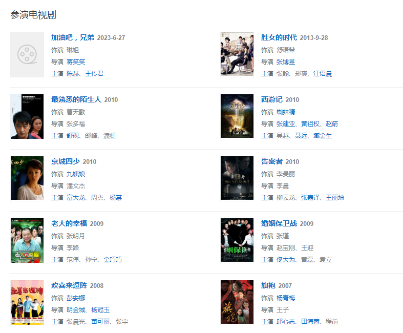 2010年,拍攝張紀中作品新版《西游記》,飾演妖艷的蜘蛛精一角。