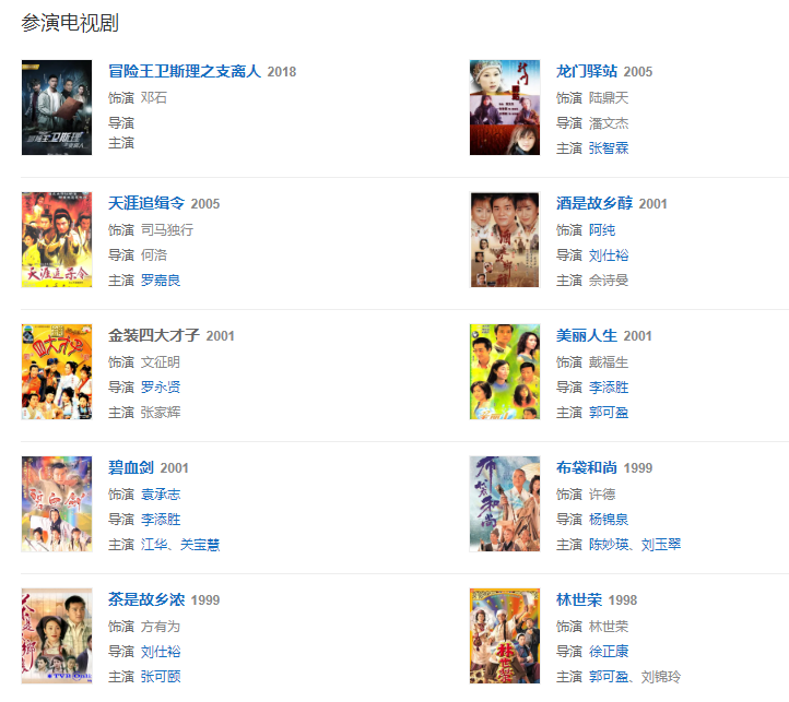 代表作品:樹大招風、寒戰(zhàn)、那年夏天你去了哪里、消失的兇手、別有動機、黑社會、金裝四大才子、碧血劍