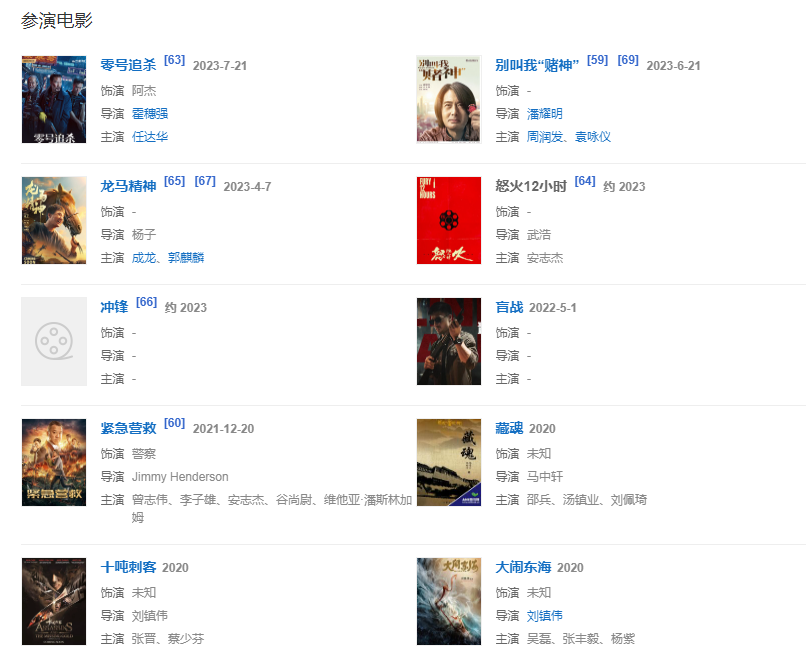 代表作品:少年阿虎、新警察故事、男兒本色、惡戰(zhàn)、逆戰(zhàn)、特殊身份