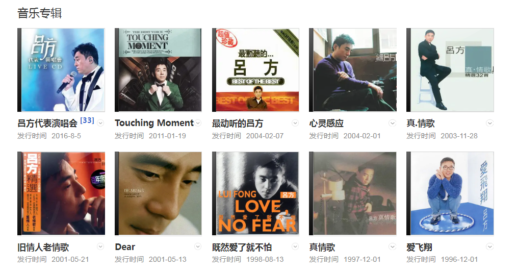 1995年,呂方發(fā)行專輯《愛一回傷一回》,專輯中的一首質(zhì)樸感人的抒情歌曲《朋友別哭》,唱遍兩岸三地。《朋友別哭》亦是當(dāng)年臺灣電視連續(xù)劇《情濃半生緣》的片頭曲。