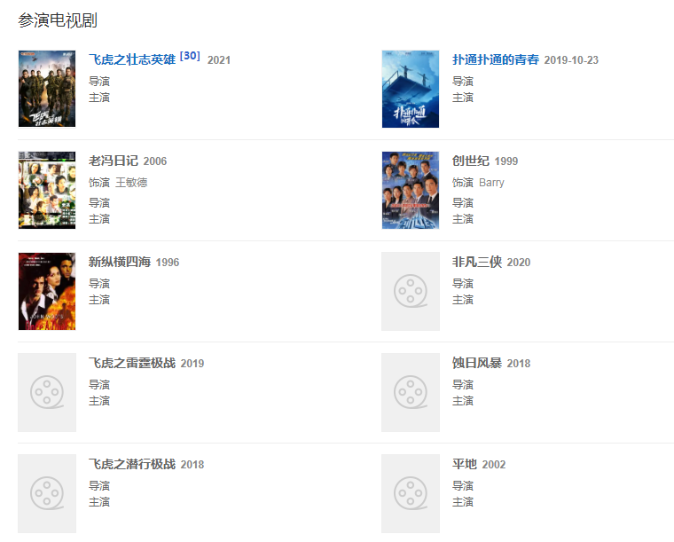 代表作品創(chuàng)世紀、飛虎、花旗少林