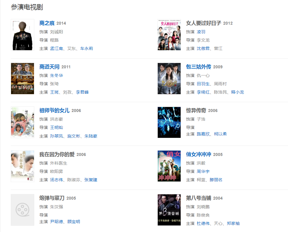 代表作品:青蘋果樂園、心在想念、明天、他和她、名揚(yáng)花鼓、離不開你、聚客鎮(zhèn)、還珠格格、無處安放、等愛歸來、千面