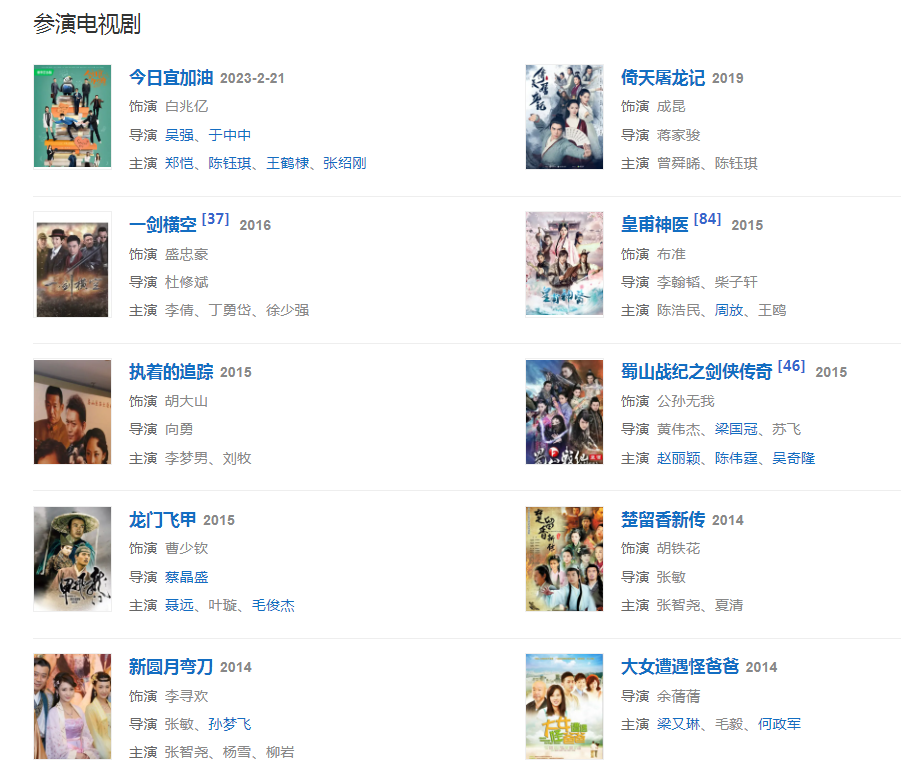 2016年參演電視劇《蜀山戰(zhàn)紀(jì)之劍俠傳奇》,在劇中飾演公孫無(wú)我一角