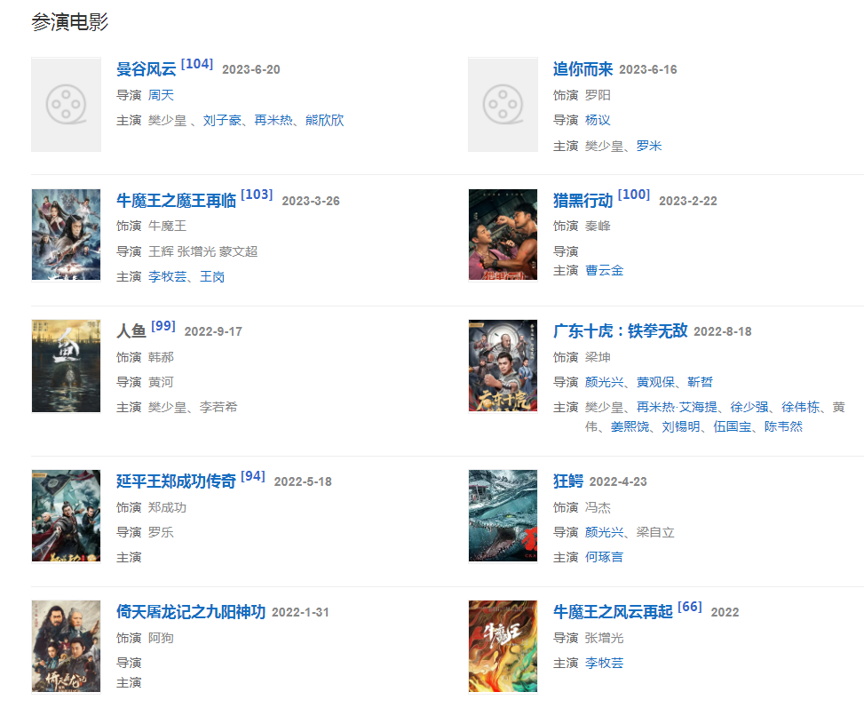 代表作品:力王、英雄貴姓、葉問(wèn)、天龍八部、南拳北腿、魔域飛龍、越光寶盒、龍門(mén)飛甲