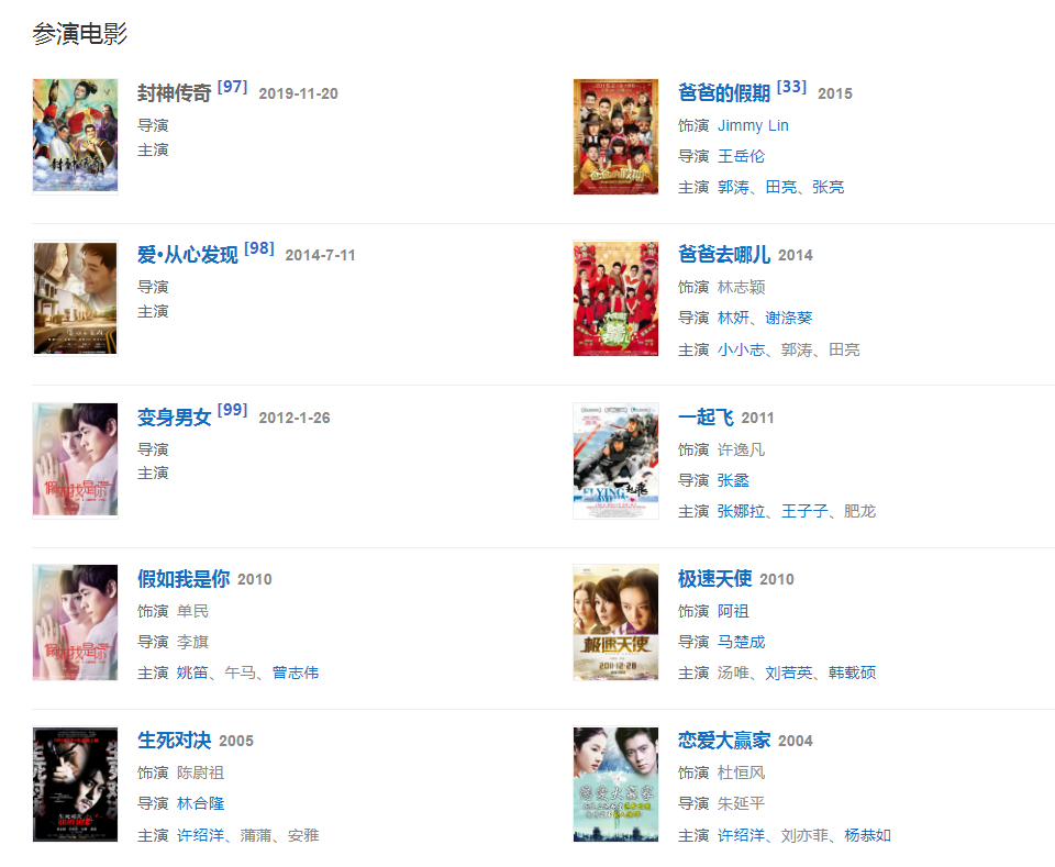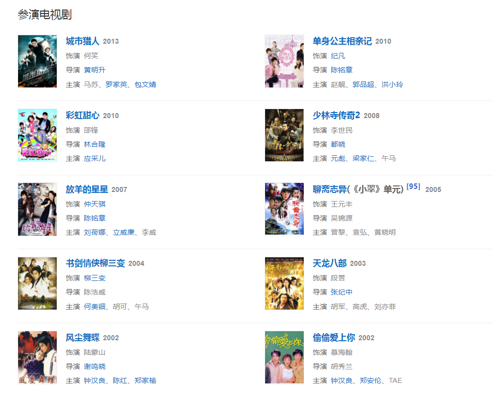 代表作品:十七歲的雨季、不是每個(gè)戀曲都有美好回憶、為什么受傷的總是我、戲夢、稻草人、對望、放羊的星星、絕代雙驕、天龍八部、天地傳說之寶蓮燈、笑林小子