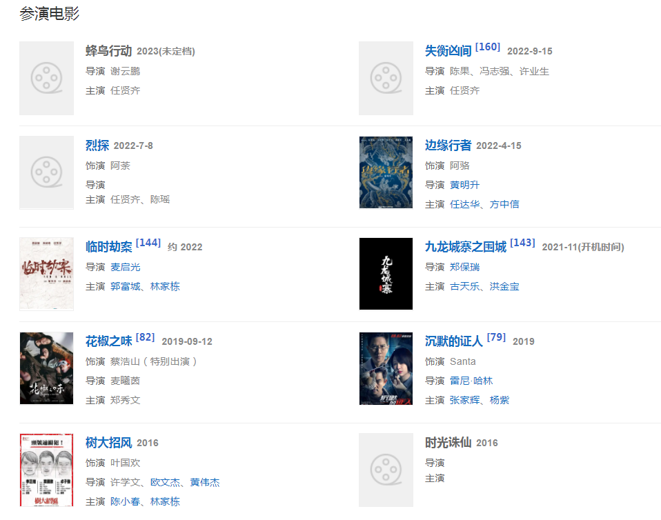 2017年憑借警匪片《樹(shù)大招風(fēng)》獲得第36屆香港電影金像獎(jiǎng)最佳男主角獎(jiǎng)提名;同年參加達(dá)喀爾拉力賽 。