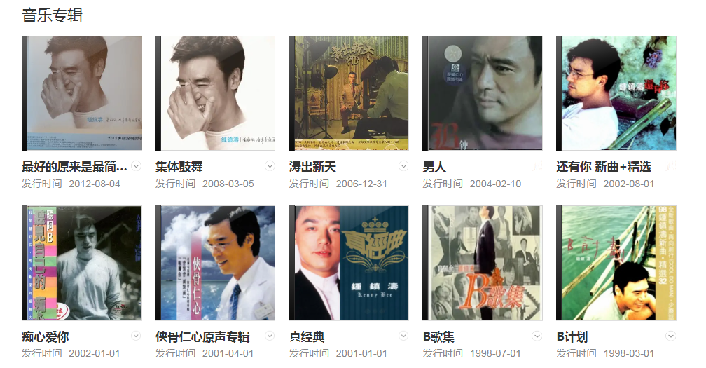 截至2020年,鐘鎮(zhèn)濤出版的專輯超過40張,領(lǐng)銜主演的電影超過80部。